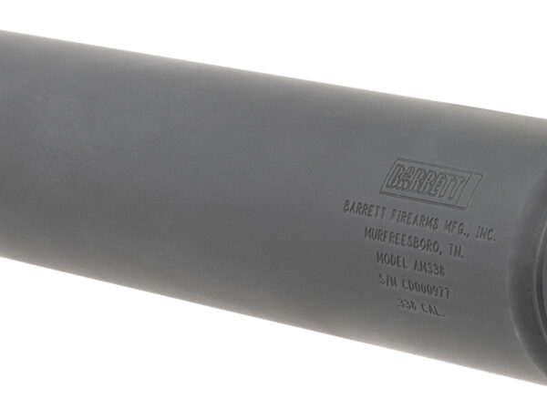 Barrett 18412 AM 338 made of Black Titanium with 1.80″ Diameter, 9.90″ OAL & 3/4″-24 tpi Thread Pattern for 338 Cal or Lower Includes Barrett Muzzle Brake Adaptor